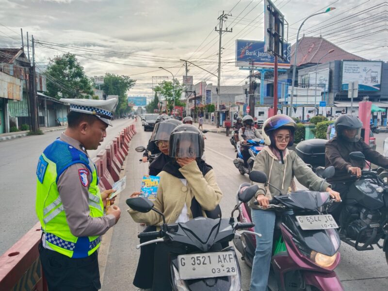 Brebes – Satlantas Polres Brebes melaksanakan kegiatan sosialisasi Operasi Zebra Candi 2025 dengan menyasar masyarakat di kawasan Alun-alun Kabupaten Brebes pada Jumat, 21 November 2025. Kegiatan dimulai sejak pukul 07.00 WIB dan berlangsung hingga selesai dengan melibatkan sejumlah personel fungsi lalu lintas. Sosialisasi ini merupakan upaya Polres Brebes untuk meningkatkan kesadaran serta kepatuhan masyarakat terhadap aturan berlalu lintas dalam rangka menciptakan situasi Kamseltibcarlantas yang kondusif.
