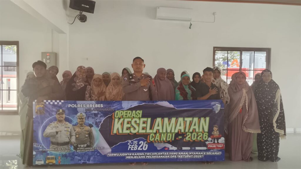 BREBES – Satlantas Polres Brebes melaksanakan kegiatan sosialisasi tertib berlalu lintas di lingkungan Pondok Pesantren Tanwirul Qulub, Kabupaten Brebes, Jumat (6/2/2026) pagi. Kegiatan ini digelar dalam rangka mendukung pelaksanaan Operasi Keselamatan Candi 2026.