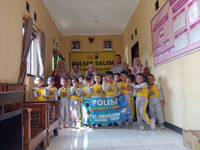 Brebes – Dalam rangka menumbuhkan kedekatan antara anak-anak dengan sosok Polisi sejak dini, Polsek Salem Polres Brebes menerima kunjungan dari siswa-siswi PAUD Umikulsum Desa Banjaran, Kecamatan Salem, pada Sabtu pagi (1/11/2025).