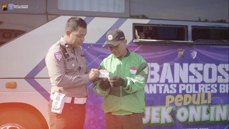 BREBES – Satuan Lalu Lintas (Satlantas) Polres Brebes menunjukkan kepeduliannya kepada komunitas Ojek Online (Ojol) di Kabupaten Brebes melalui program “Bansos Peduli Ojek Online Satlantas Polres Brebes” yang berlangsung sejak Jumat hingga Senin, 17-20 Oktober 2025.